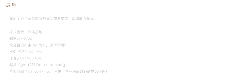 邮编 879-5102 大分县由布市汤布院町川上3083番1 电话・传真0977-85-4890
